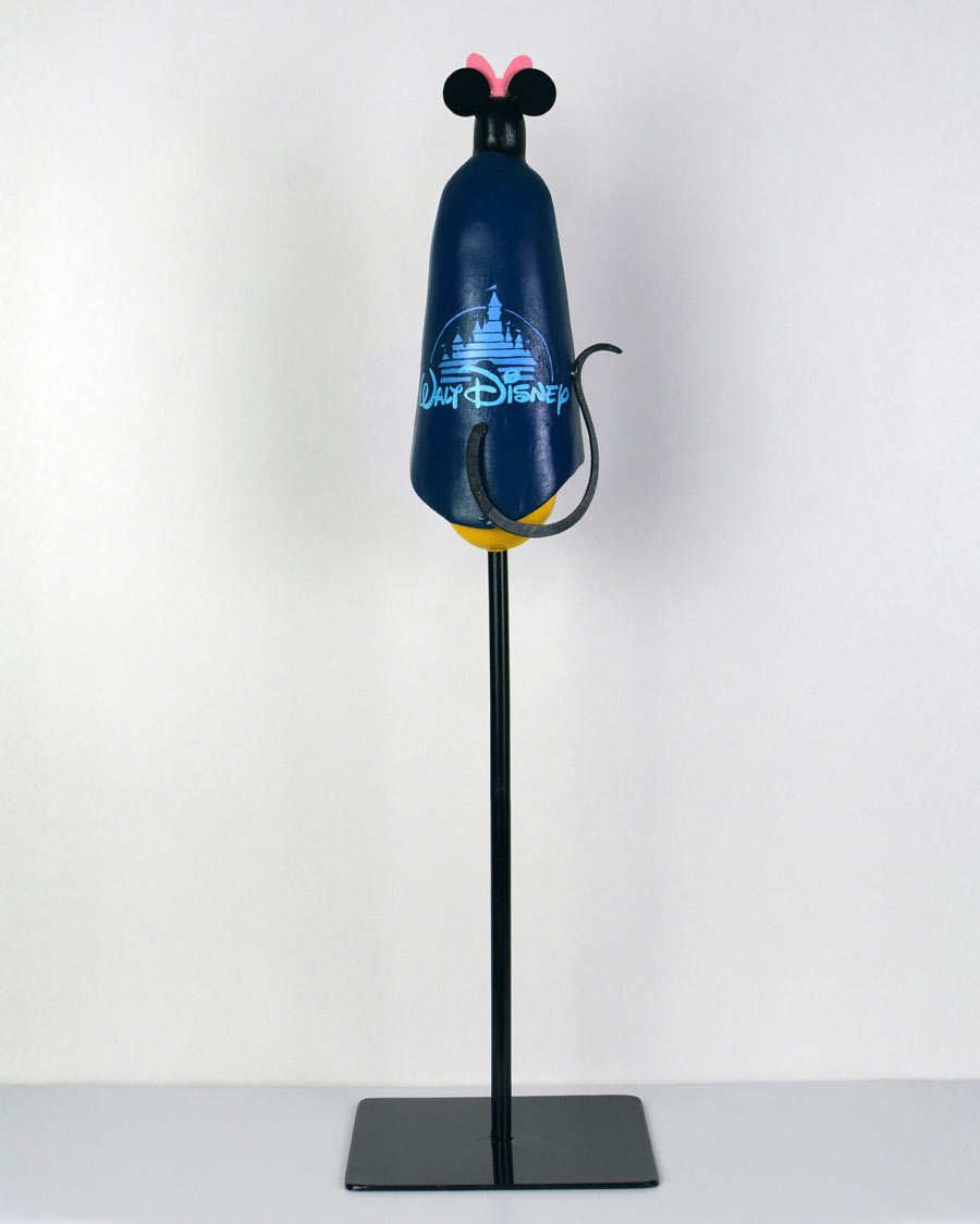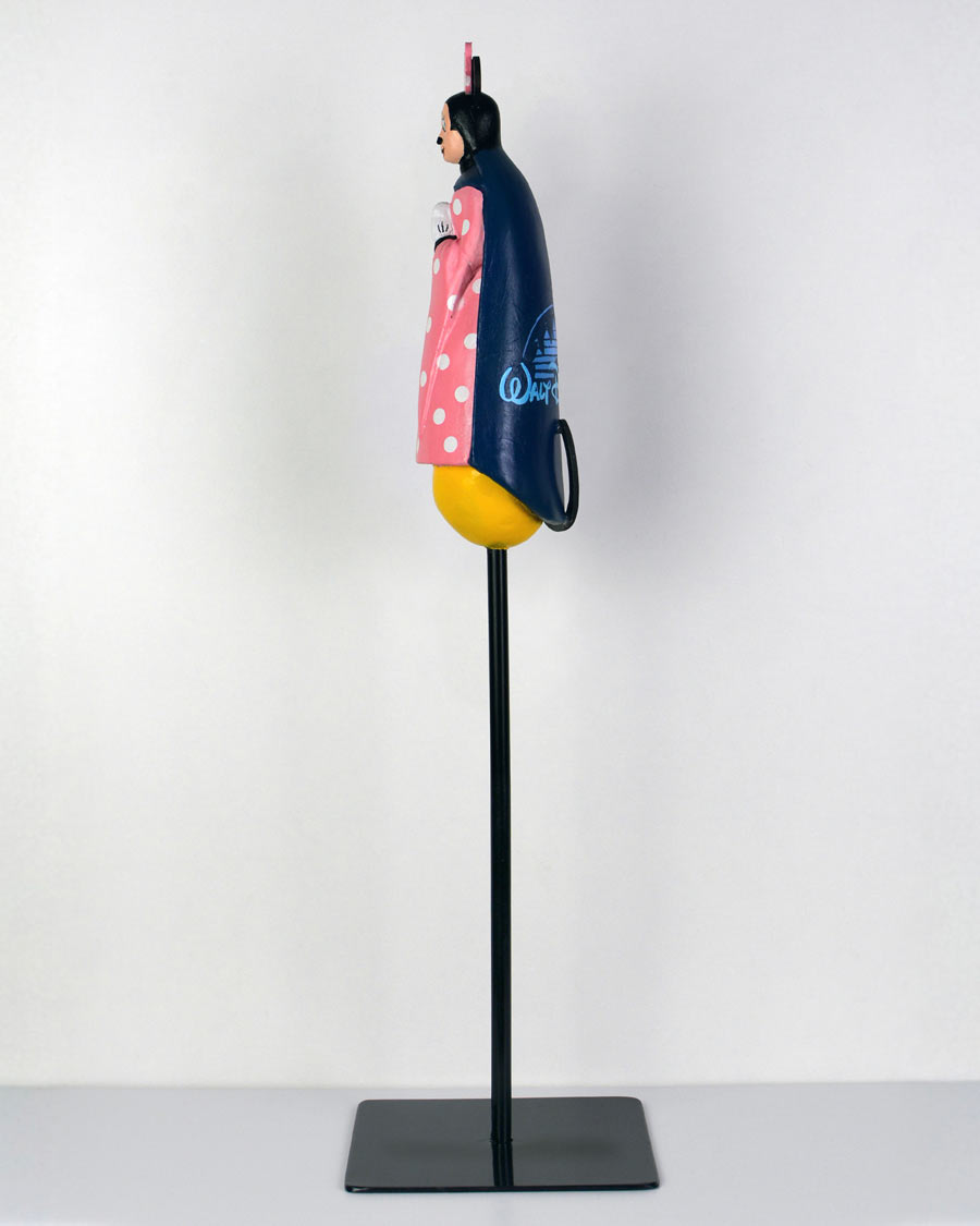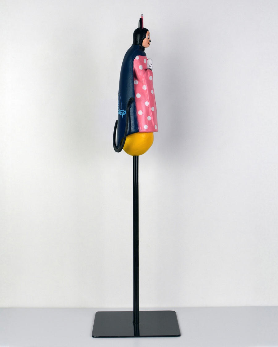 Resina y madera cortada con láser policromada. Peana de hierro.